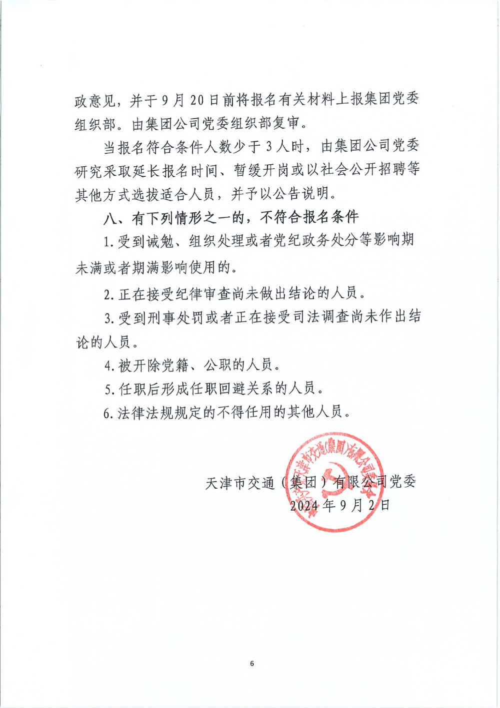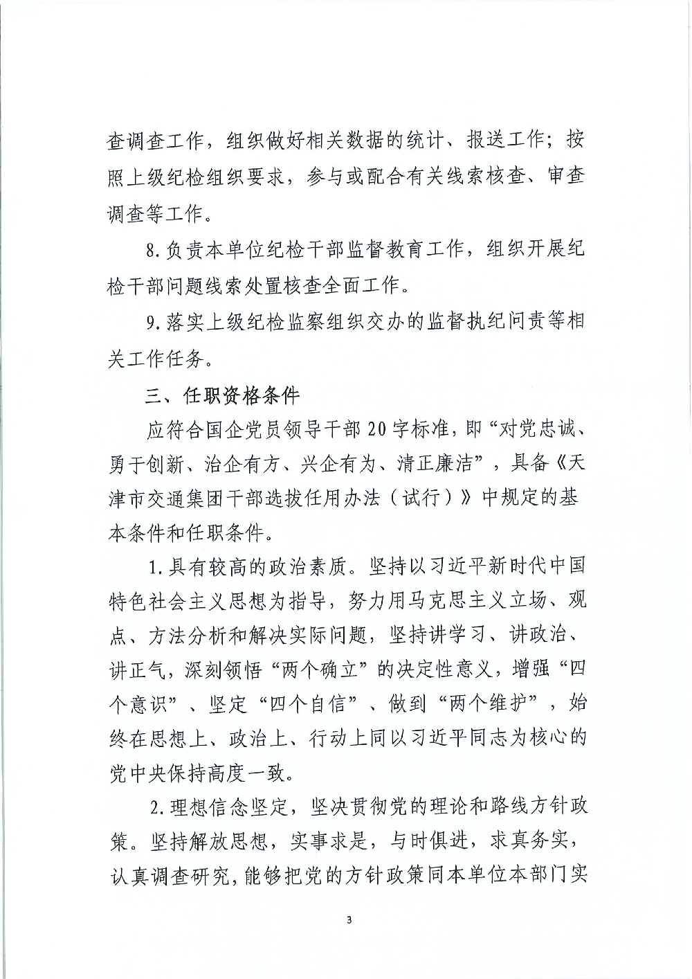 天津市交通集团关于面向集团公司内部公开选拔集团公司直属企业纪委书记的公告