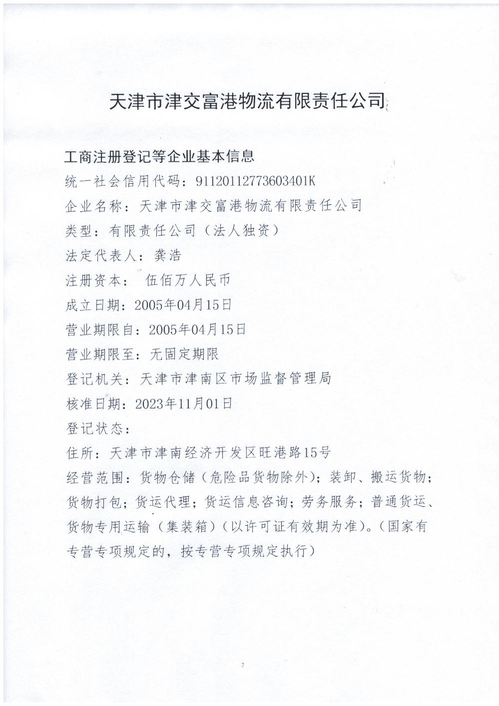 天津市津交富港物流有限责任公司