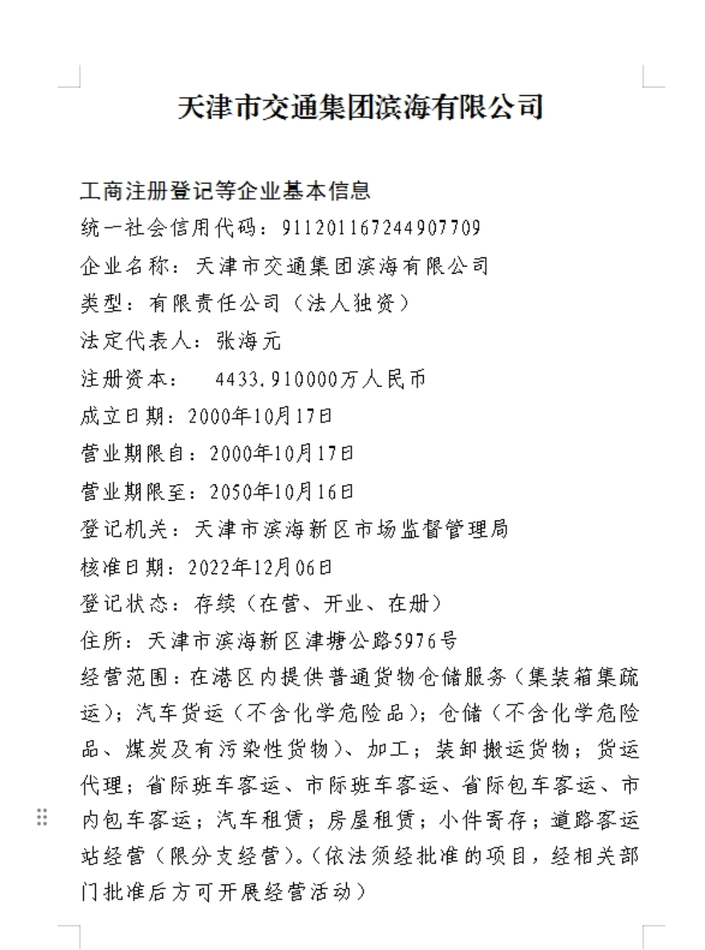 天津市交通集团滨海有限公司