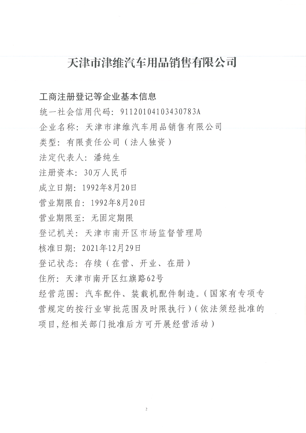 天津市津维汽车用品销售有限公司