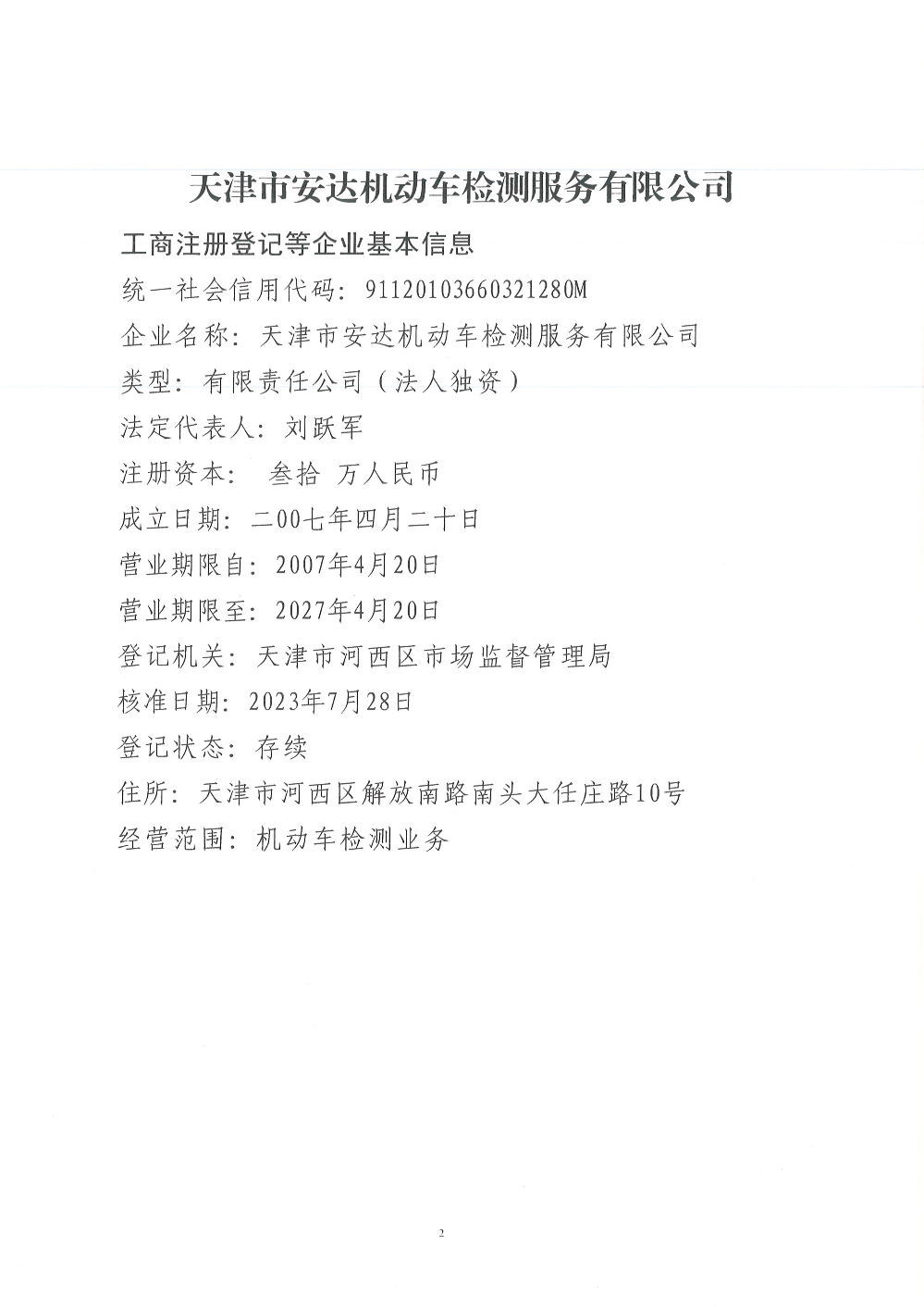 天津市安达机动车检测服务有限公司