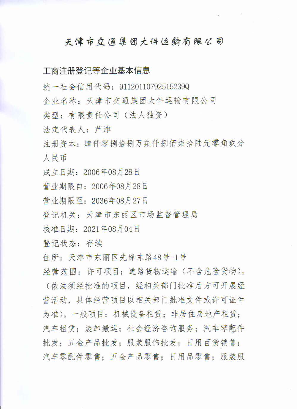 天津市交通集团大件运输有限公司