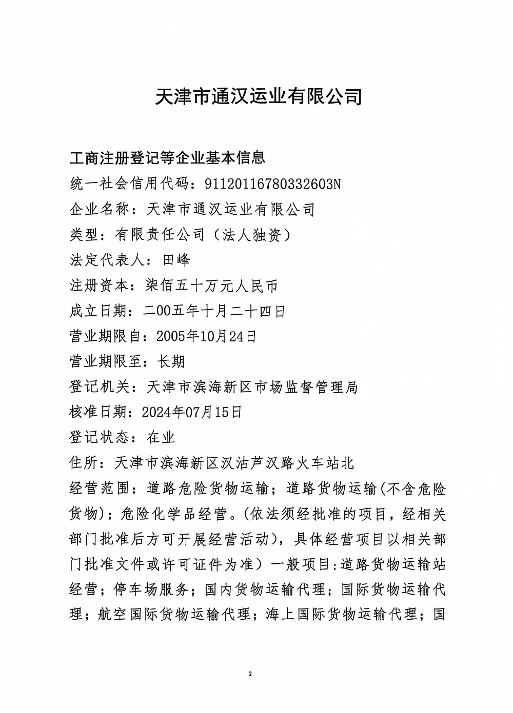 天津市通汉运业有限公司